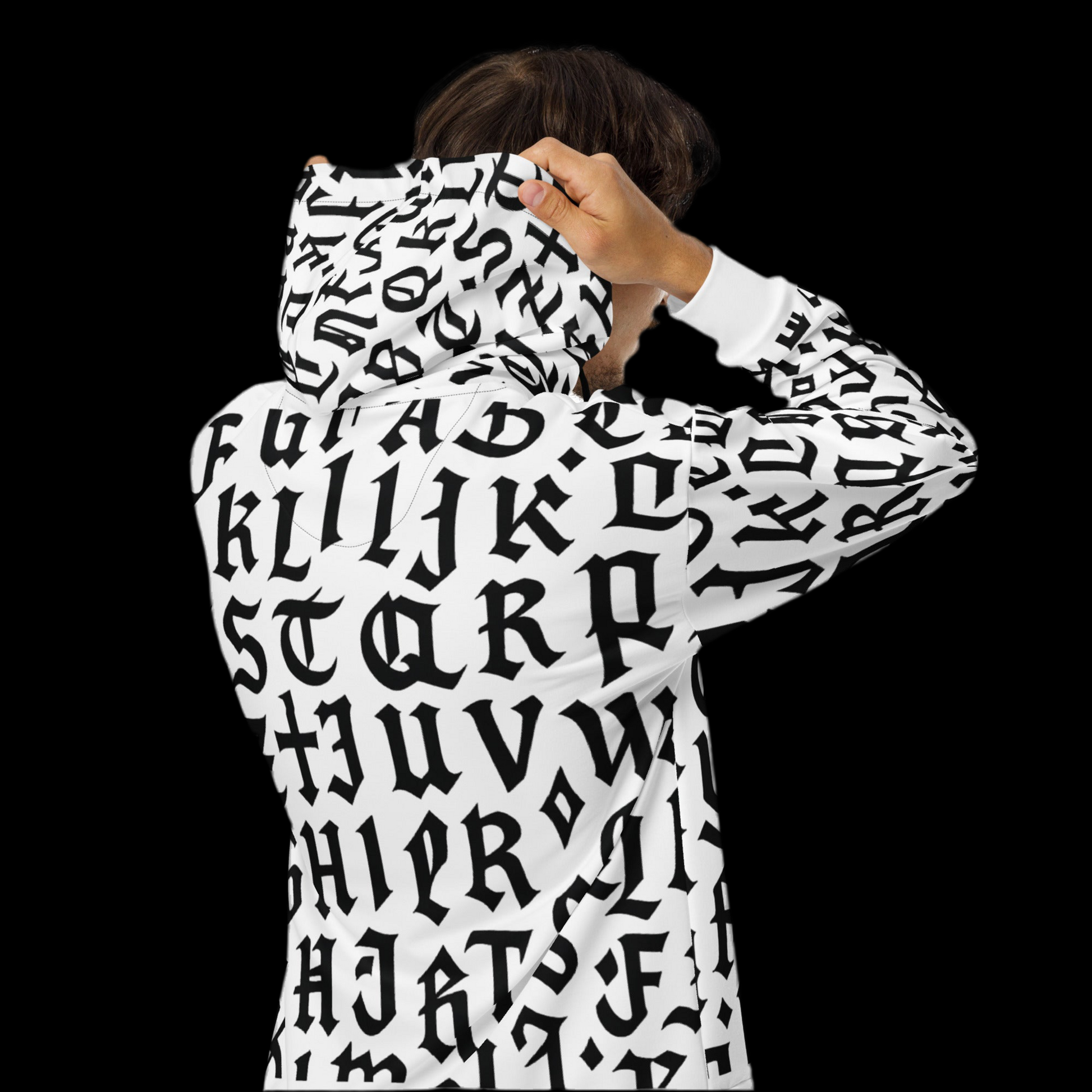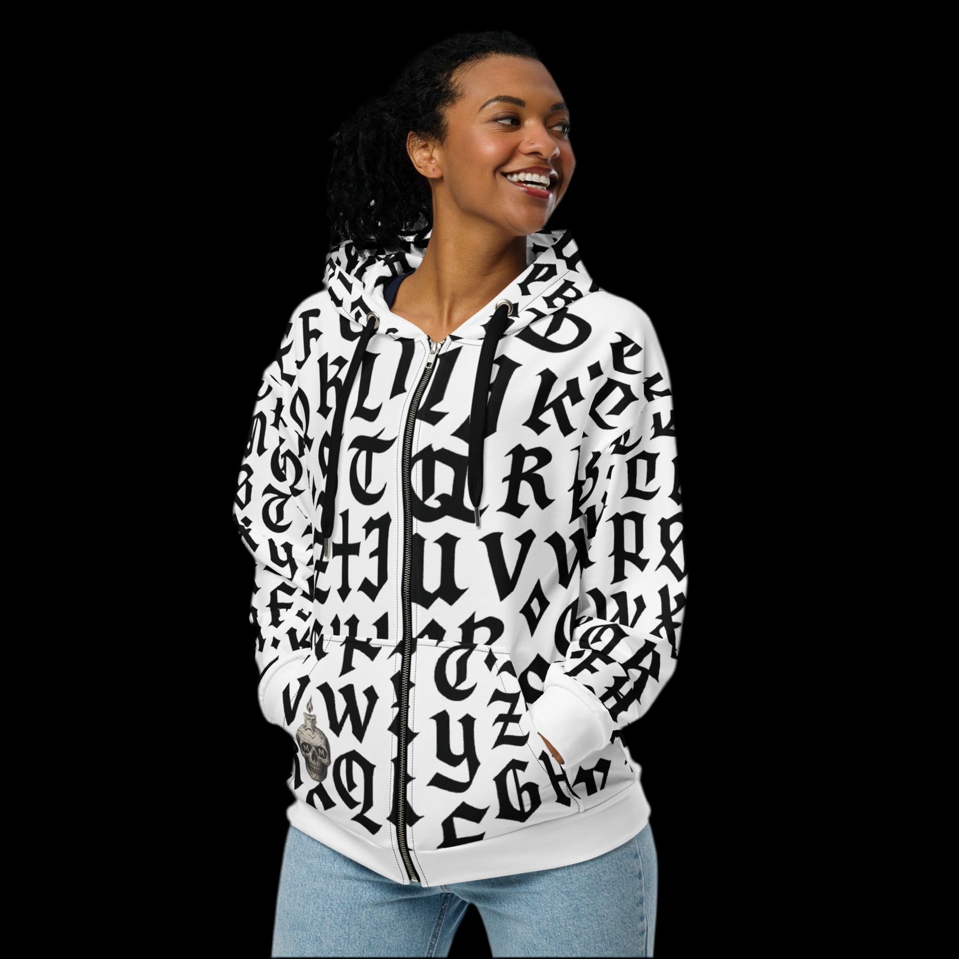 Felpa con cappuccio e zip stile MasaMortis con rune attivate per affrontare una eventuale apocalisse.