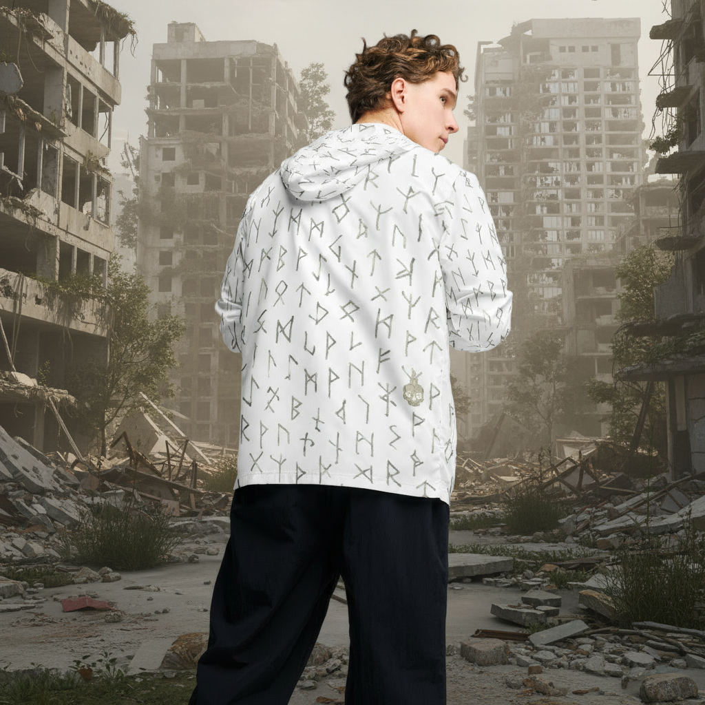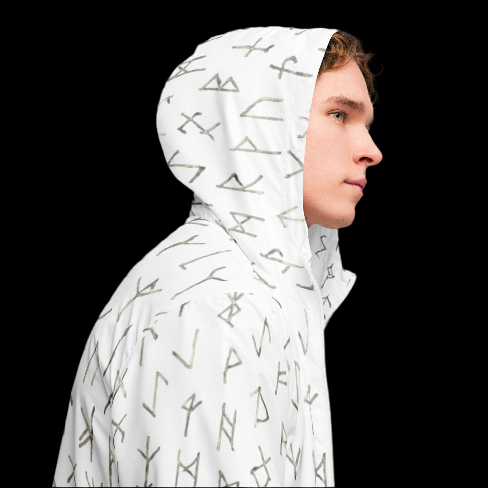 Giacca a vento con stampa all over uomo. Rune per la sopravvivenza